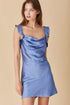 Title: EnSemble Blue Satin Ruffle Strap Mini Dress - New Without Tags - Size M